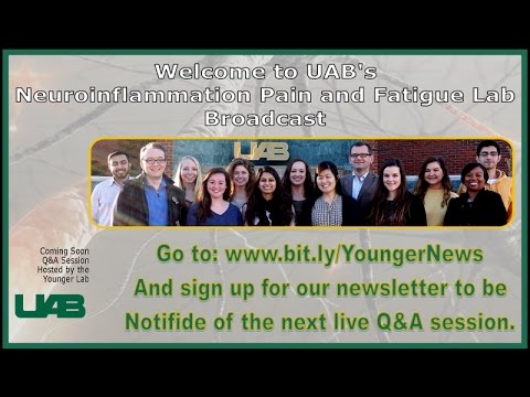 Our third YouTube Live Q&A Broadcast will be on Friday, September 2 at 2 p.m. CDT. Find out about the research at UAB's Neuroinflammation, Pain and Fatigue Lab, also known as the Younger Lab. These sessions are for our scientists to answer questions about our research into the role neuroinflammation may have in chronic pain and chronic fatiguing conditions, such as fibromyalga, ME/CFS (chronic fatigue syndrome or systemic exertion intolerance disease), and Gulf War illnesses.