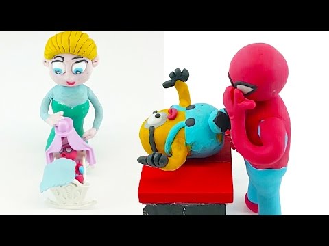 Elsa is a Best Mummy: PlayDoh Elsa Frozen Fun Babysitting Pranks Superhero Stop Motion Videos