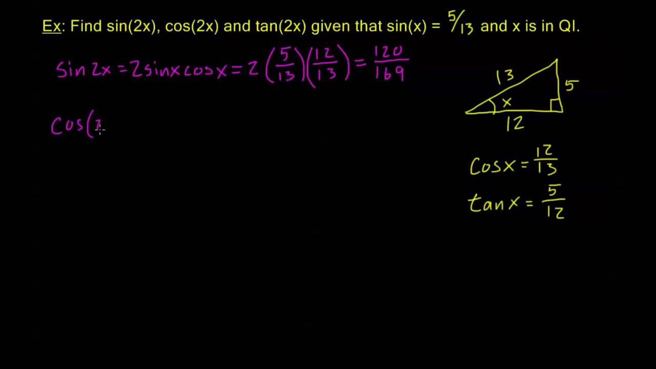 Introduction and derivation of the double angle formulas for sine, cosine and tangent. Some worked examples
