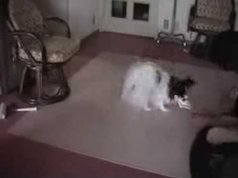 履いた靴下が大好きな二匹のパピヨン犬。女の子のみどちゃんは、必死で追いかけて引きずられても絶対はなしません。滑り込んで転んでも靴下を追い求めます。後半、投げ方が悪かったのでオスのレミファとぶつかって痛い思いをしました。ごめんなさい、みどちゃん。気を取り直してまた遊ぼうね。