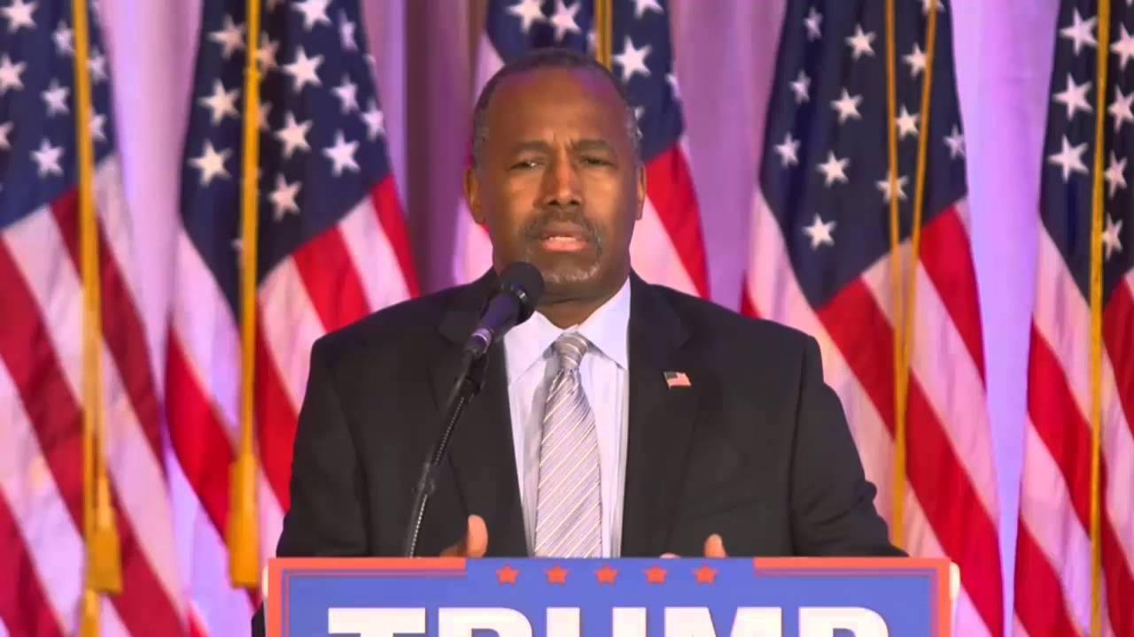 Donald Trump held a press conference today from the Mar-A-Lago Club in Palm Beach, FL. Ben Carson attended the event, where he handed the mogul his endorsement. Carson says a house divided against itself cannot stand and together the country will “ascend to a much higher pinnacle” than anyone expects Carson sees spiritual alignment with Trump Carson’s speaking at a Trump event in Palm Beach. Trump is waiting in the wings. Carson’s standing behind a Trump-branded lectern in front of Trump’s usual backdrop of American flags. “There’s a lot more alignment, philosophically and spiritually, than I ever thought there was,” Carson says of himself and Trump.