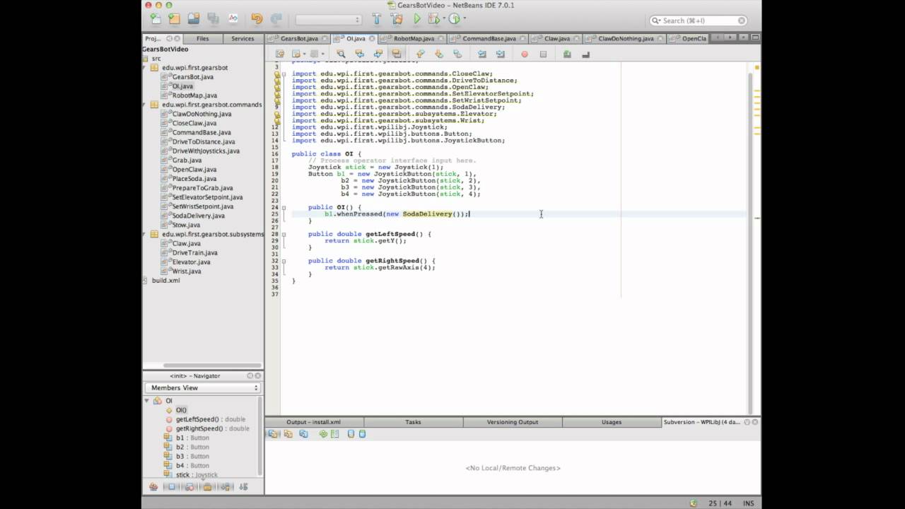 The last in the series that shows how to create one large command group that does all of the autonomous functions, then links it to a button so you can use it for teleop also. This video is the culmination of all the others and puts everything together.