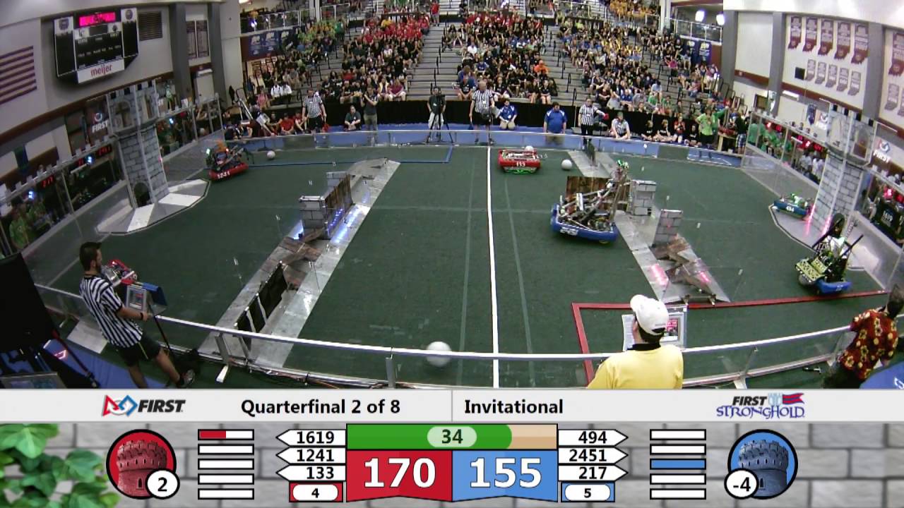 QF2M1 - 2016 Indiana Robotics InvitationalRed (1619, 1241, 133) - 255Blue (494, 2451, 217) - 205http://www.thebluealliance.com/match/...Uploaded by FRC Video Splitter (https://github.com/tytremblay/FRC-Vid...)