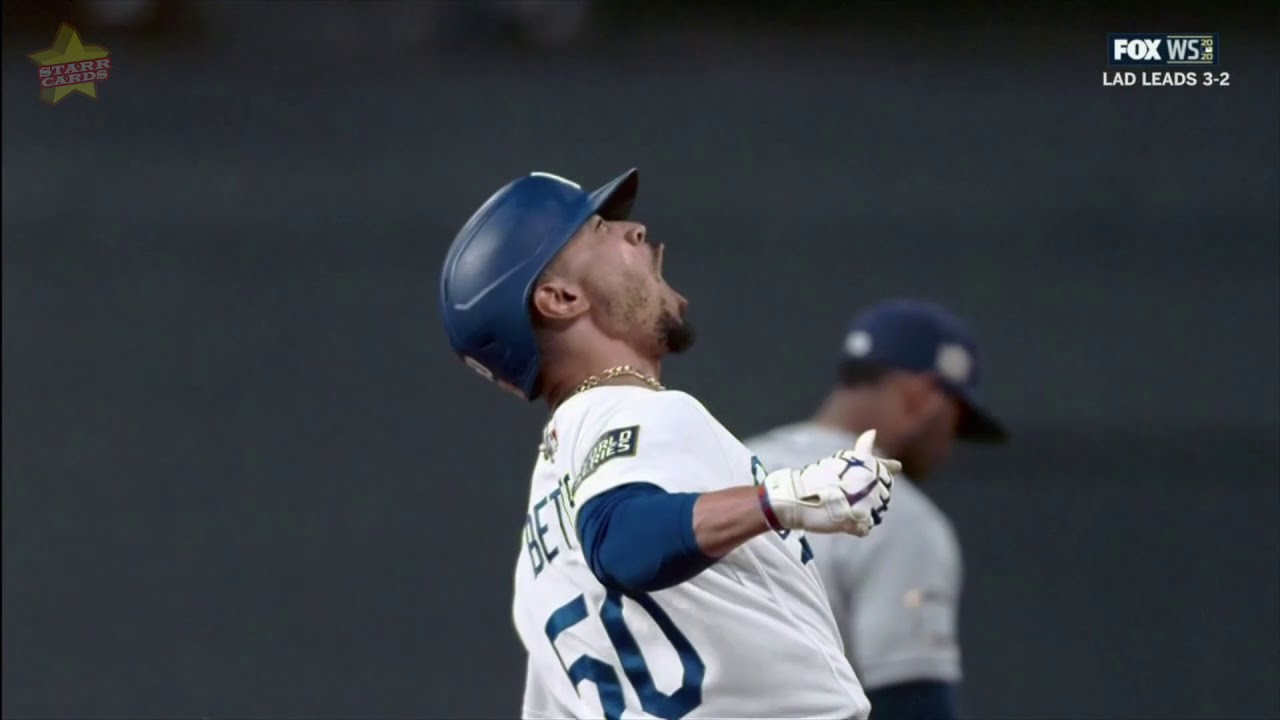 World Series Game 6: Mookie Betts pads Dodgers lead with joyful home run in the eight inning - YouTube