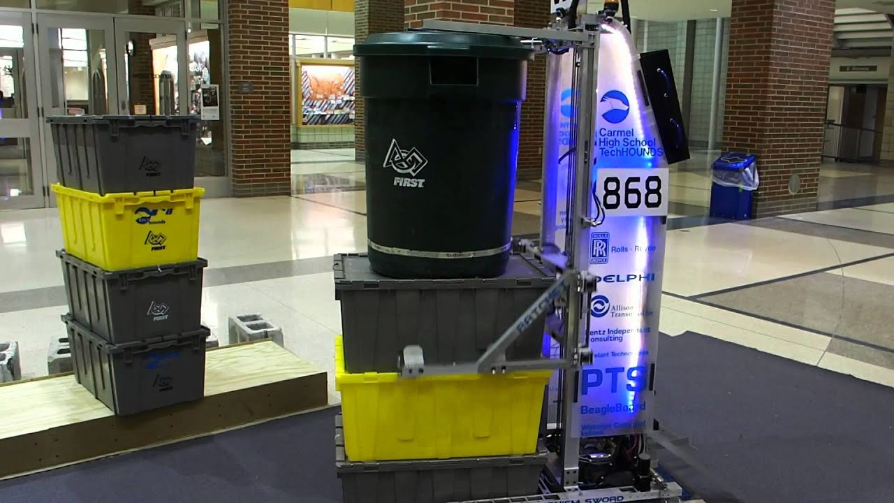 FRC team 868, The Carmel High school TechHOUNDS, proudly present their 2015 robot for the FIRST game Recycle Rush: SENTINEL