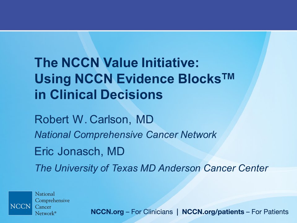 The NCCN Value Initiative: Using NCCN Evidence Blocks in Clinical Decisions