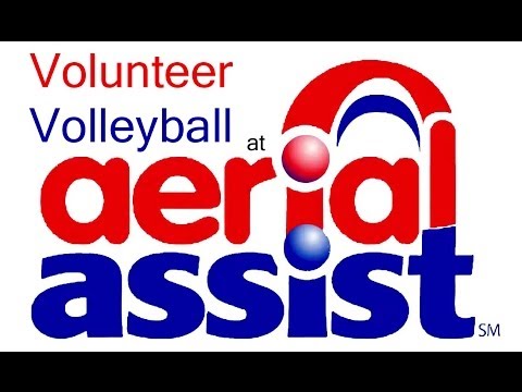 It's before the matches start. The volunteers are bored. There's big, inflated exercise balls. There's a truss over the field. Why not have a volleyball game?