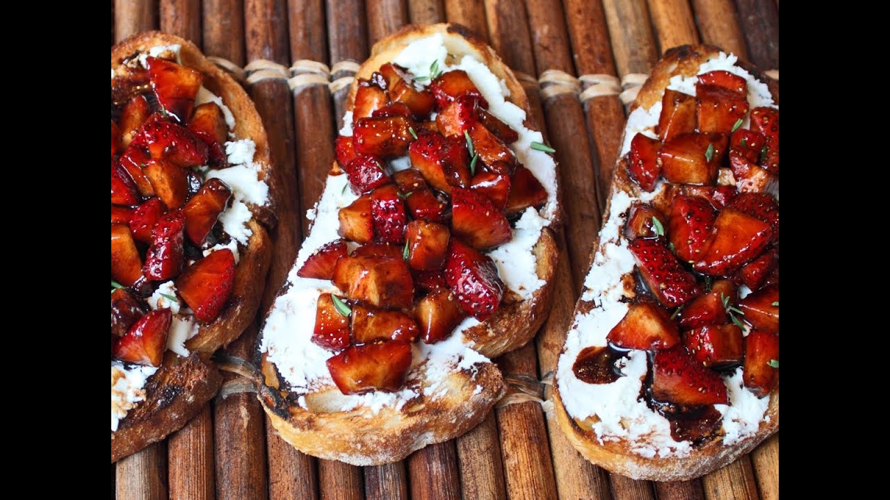 Learn how to make Strawberry Goat Cheese Bruschetta! Go to http://foodwishes.blogspot.com/2012/0... for the ingredient amounts, more information, and over 725 more video recipes! Enjoy this Grilled Bruschetta with Balsamic Strawberries & Goat Cheese recipe!