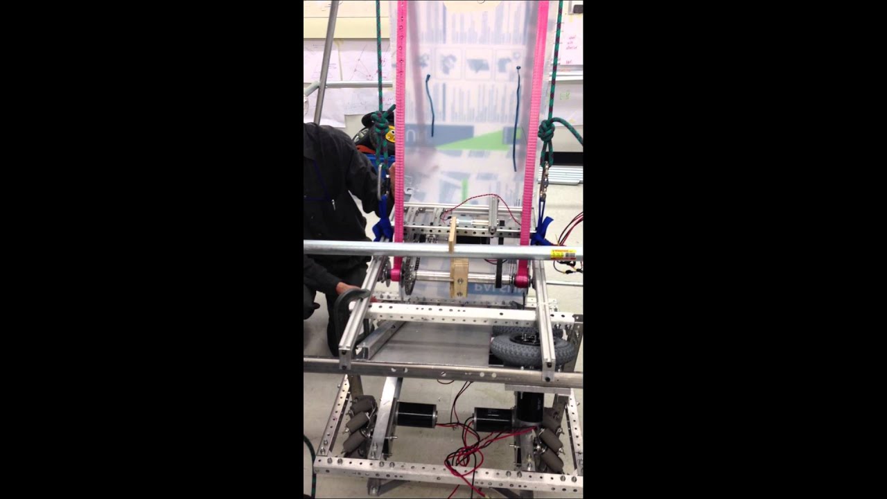 Here is a video of our 2013 robot climbing. We are still perfecting the hanger but for right now here is a video.