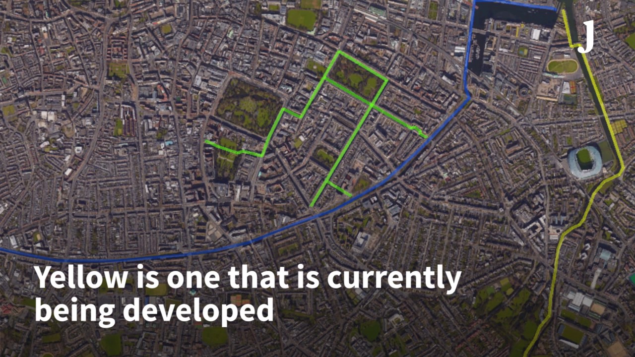 The proposed design, labelled the Georgian Parkway, would see parked cars create a buffer between the cycle lane and traffic. It’s a method used in a number of other countries http://jrnl.ie/3467614f