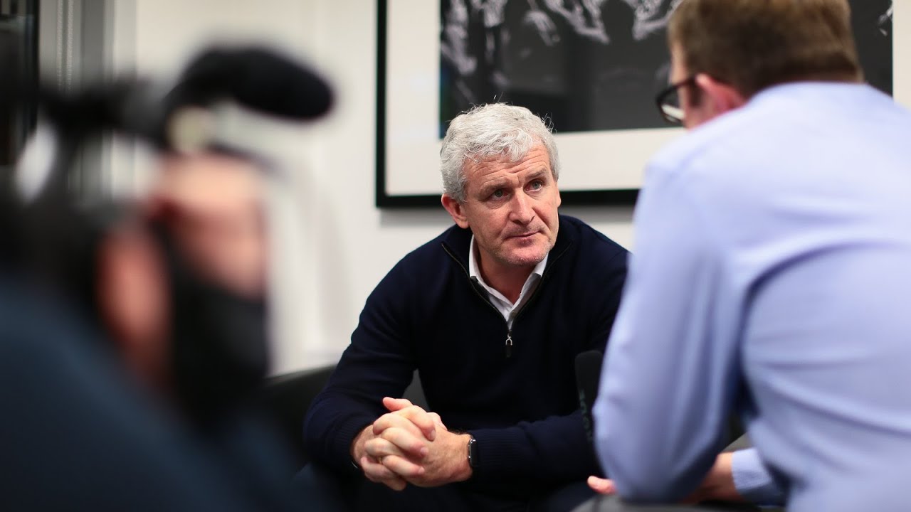 Stoke City manager Mark Hughes speaks to Stoke City Player following the Club record signing of Giannelli Imbula.