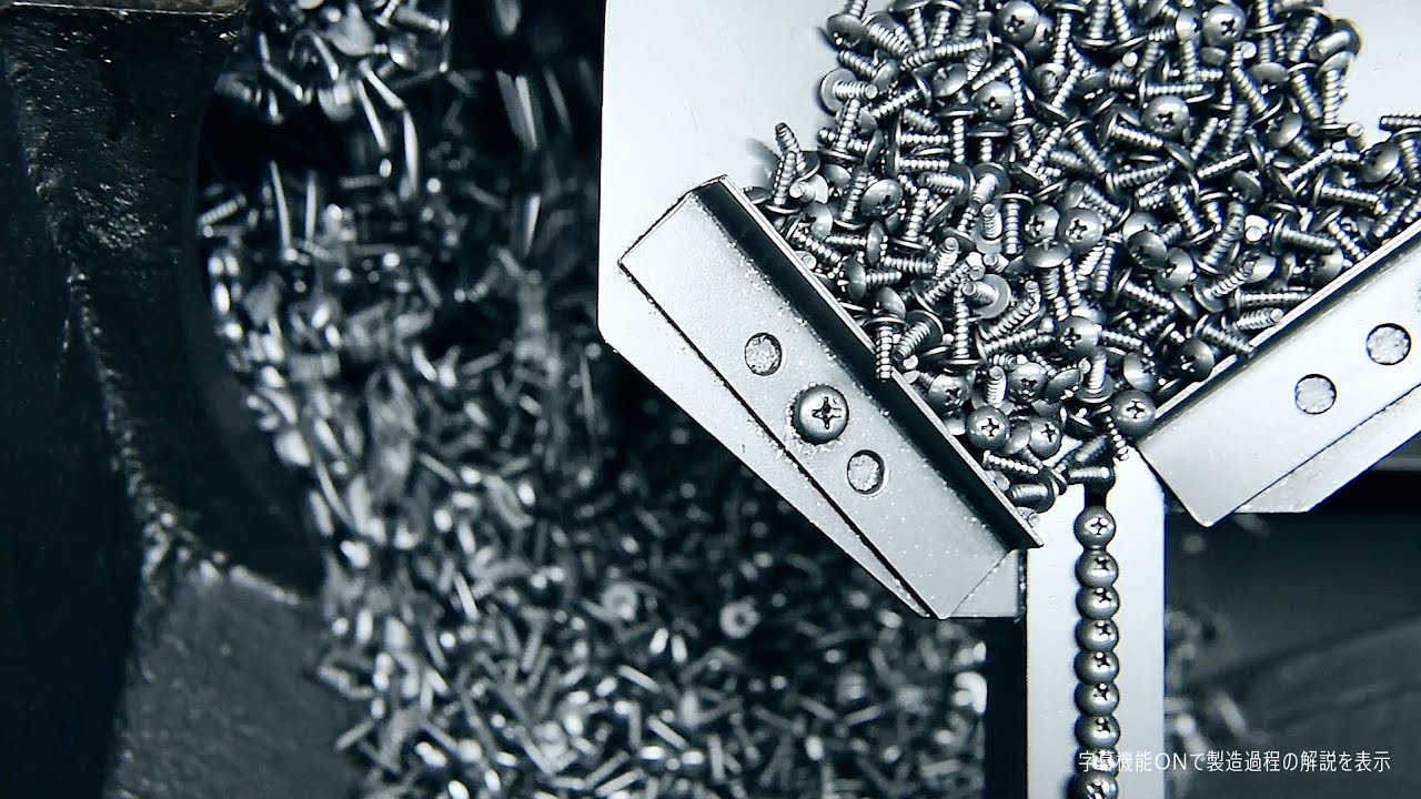 This factory produces roughly 400,000 screws in one day. Countless screws fly through the air, are arranged into orderly lines, and are forged into a finished product. Dorian uses the rhythmic din echoing from the machinery used in this process to create a dazzling new techno track.
