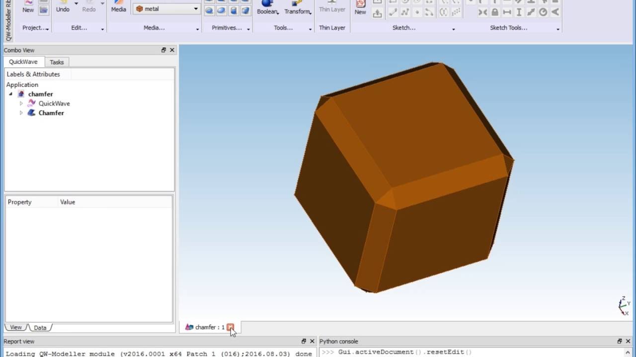QW-Modeller for QuickWave: this tool chamfers the selected edge(s) of an object.
