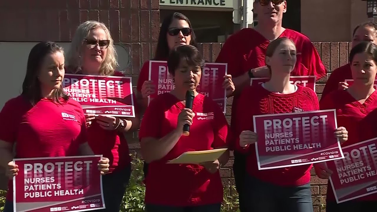 Nurses held a rally at Mercy General Hospital in Sacramento Wednesday as part of a nationwide Day of Action to protest what they call the government's and the CDC's ineffective response to COVID-19.
