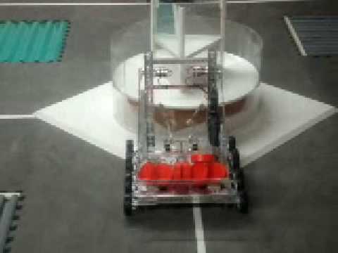 G-F0RCE's autonomous mode. It averages 7 pucks in center triangle. Since we have 11 seconds to spare, we're going to work on dumping the far puck holder. We're playing in the MD competition.