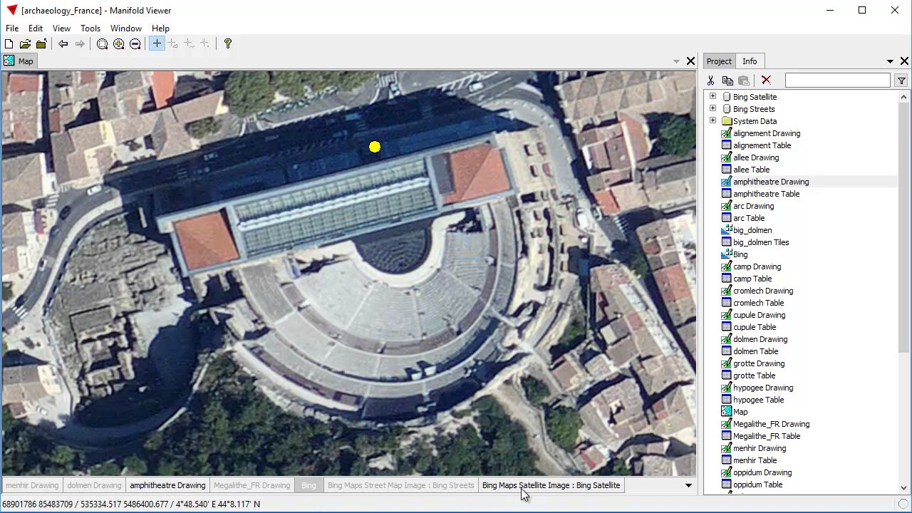 We use a pre-built, pre-formatted, beginner-friendly project to discover almost all archaeological sites in France we can visit, from ancient Neolithic monuments dating back 6000 years to Roman amphitheaters and temples. A GIS expert prepared the project in Radian Studio and published it as a Radian format map so that anyone, virtually no skills required, can double-click that project open in Manifold Viewer. This video shows a beginner how to click open the project, click open the map and then navigate around, panning and zooming to see interesting sites. On your next visit to France bring Viewer and this freely downloadable project (download from the Manifold Viewer downloads page) with you to see all the memorable sites no ordinary tourist will ever see.
