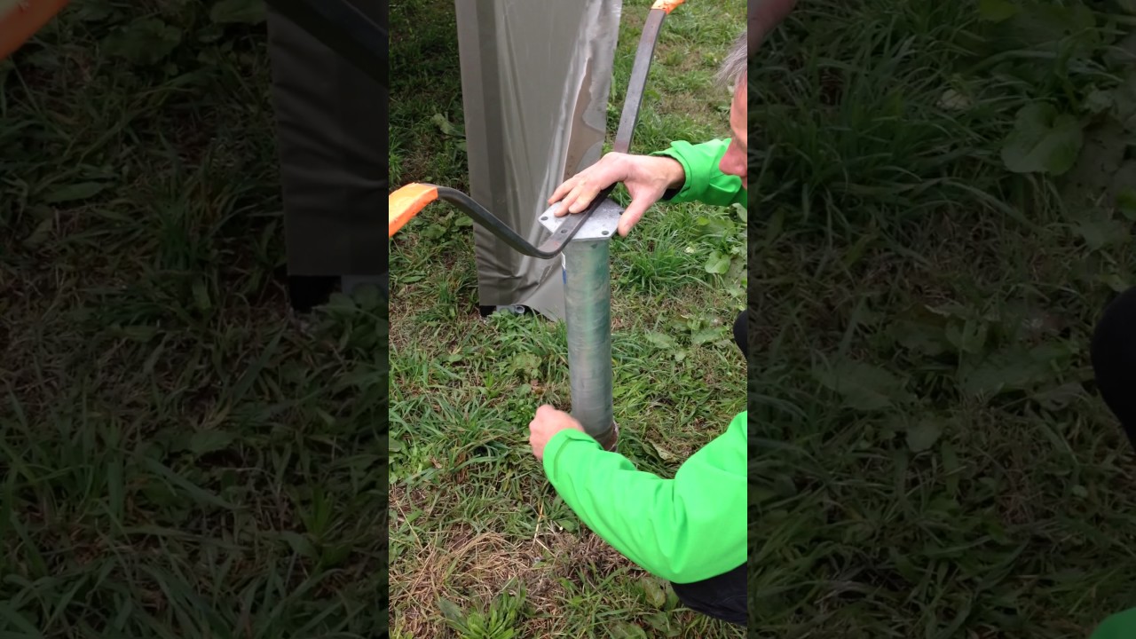 Montage du pied de l'abri-auto Ibriska sur la vis de fondation