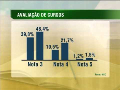 NBR NOTÍCIAS - 02.12.13: Nesta segunda-feira (2), o Ministério da Educação (MEC) divulgou um levantamento que aponta que a qualidade das instituições e dos cursos superiores melhorou nos últimos anos. Foram avaliados 8 mil cursos de ciências humanas, gestão e negócios, e outras áreas de 1,7 mil instituições de ensino superior em todo o Brasil. A nota leva em conta fatores como infraestrutura da instituição e a quantidade de professores com mestrado ou doutorado. O número de cursos com notas baixas diminuiu e a proporção de cursos com notas altas aumentou. Aqueles cursos que não tiveram nota satisfatória serão punidos.