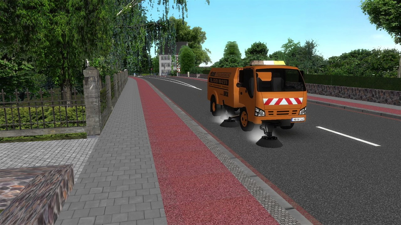Wichtig: Der Kehrer fährt normale Geschwindigkeit, wenn die Bürsten oben sind. Schließlich muss auch ein Kehrer erst einmal an den Einsatzort fahren.