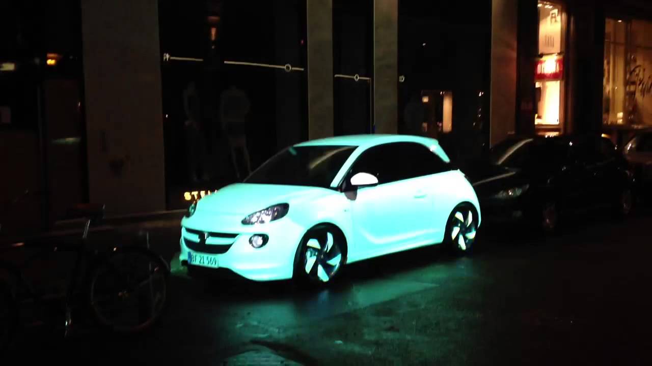 Illuminated Opel car in Copenhagen