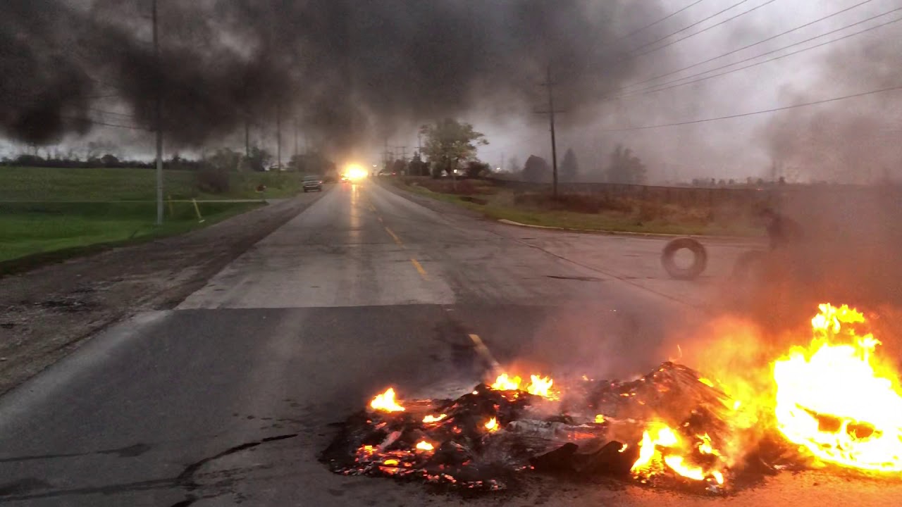 Fire blocks Hwy 6 after OPP attack land defenders. - YouTube