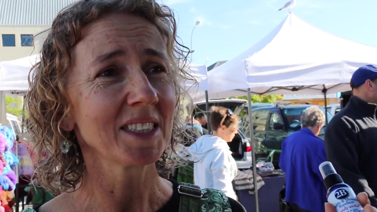 Taking about 2B Insect Repellent at the Nelson Saturday Market, South Island. New Zealand.