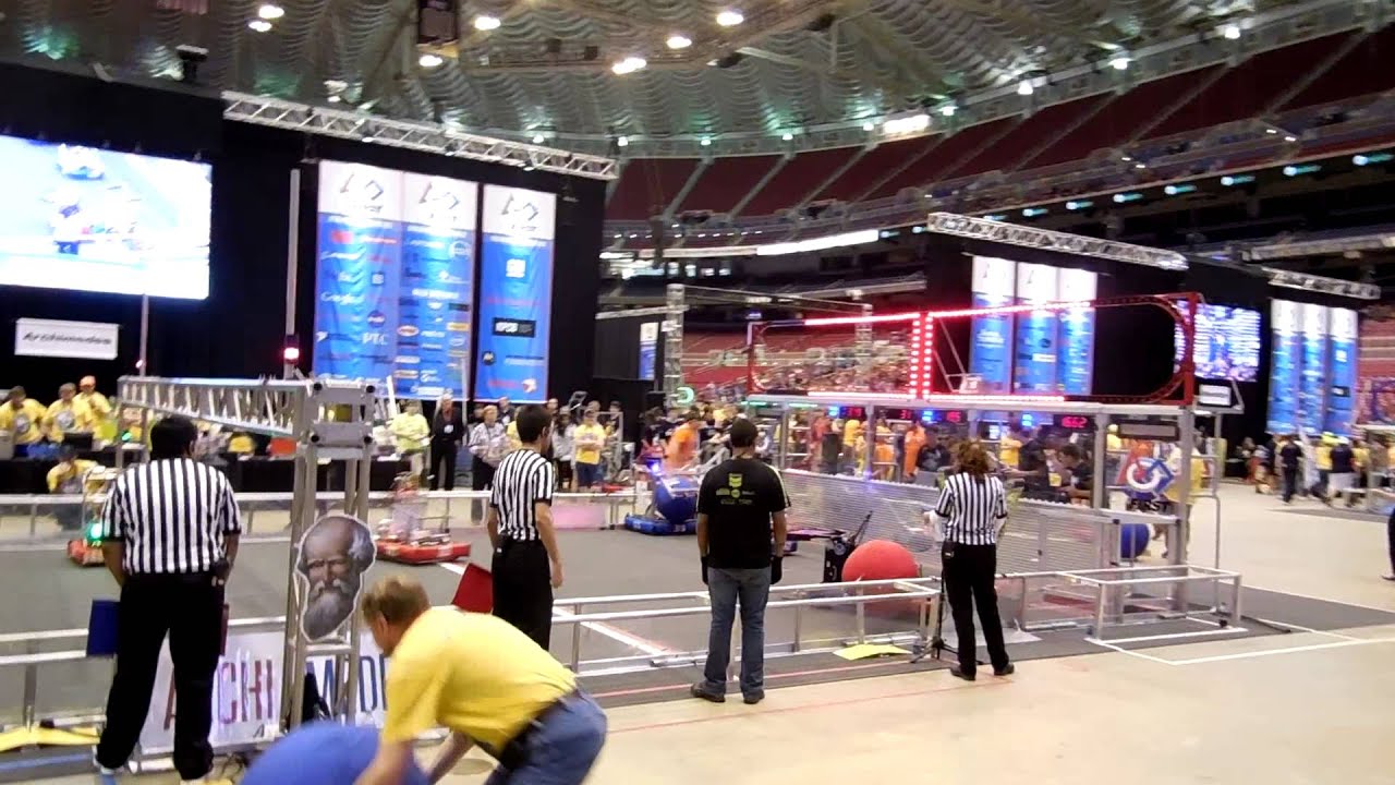 2014 FIRST Championship Event Archimedes Match 87 Blue Alliance: 195 Cyberknights, 1662 Raptor Force Engineering, 319 Big Bad Bob vs. Red Alliance: 103 Cybersonics, 2607 Fighting Robo-Vikings, 4944 The Hi Fives. Blue Wins 247 - 106.