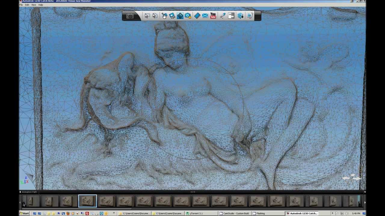 The results shown in this video are of a quick and *very* rough prototype -- more of a practice run -- and used a low-res mesh with minimal corrections. I will post all my original photos and object files so that anyone can work with them from scratch or start at any intermediate stage to improve, mix, or modify them. (I'll update this post and tweet with links to everything once I have it organized and online, which may take some time.) All my mesh files will need a lot of work - and help from others - to get better results. For a start, go to http://thingiverse.com/CosmoWenman for "Venus Reclining on a Sea Monster," a beautiful object that I have not yet experimented with, but which looks promisingly printable.