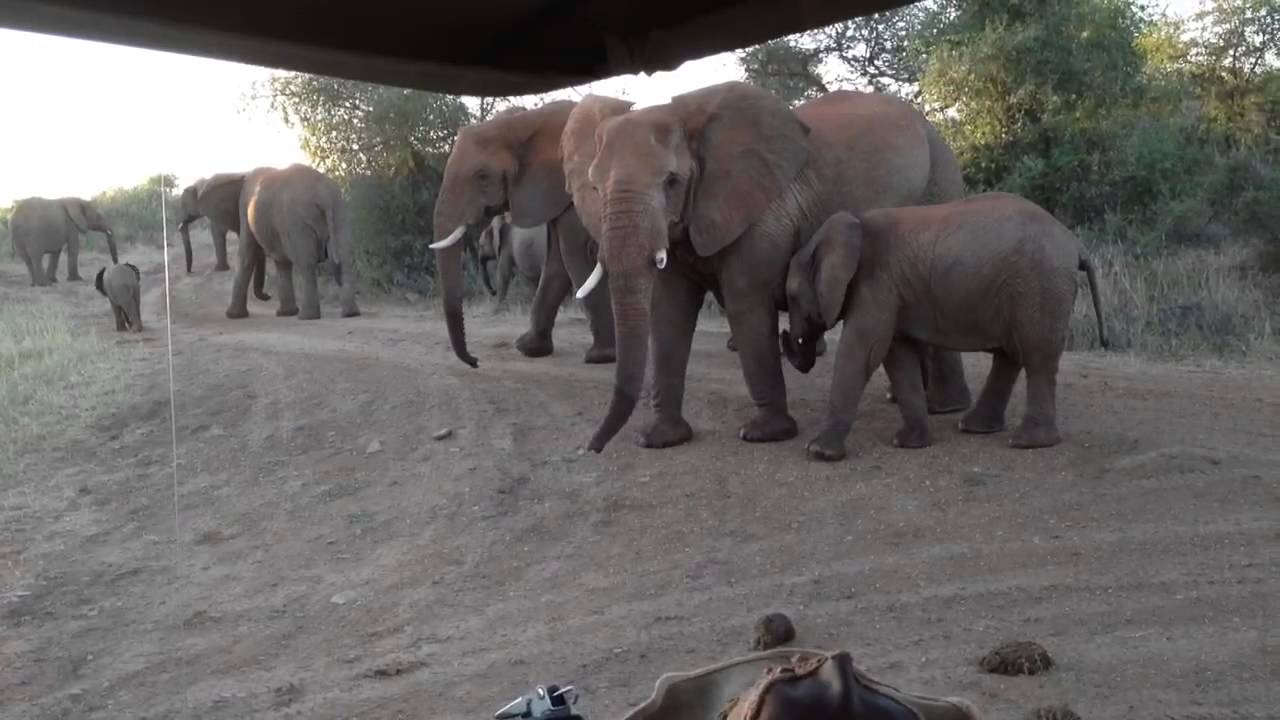 A protective Elephant herd watching over the 1 week old baby in Madikwe Game Reserve