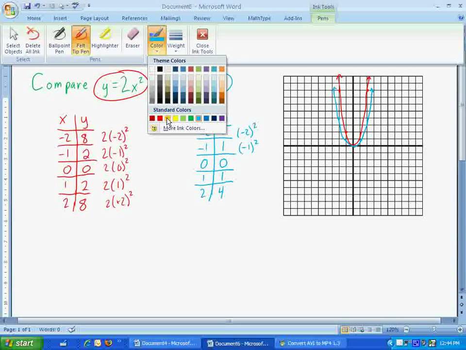 An introduction to graphing quadratics using a table. Also compares a simple quadratic equation to a parent function.