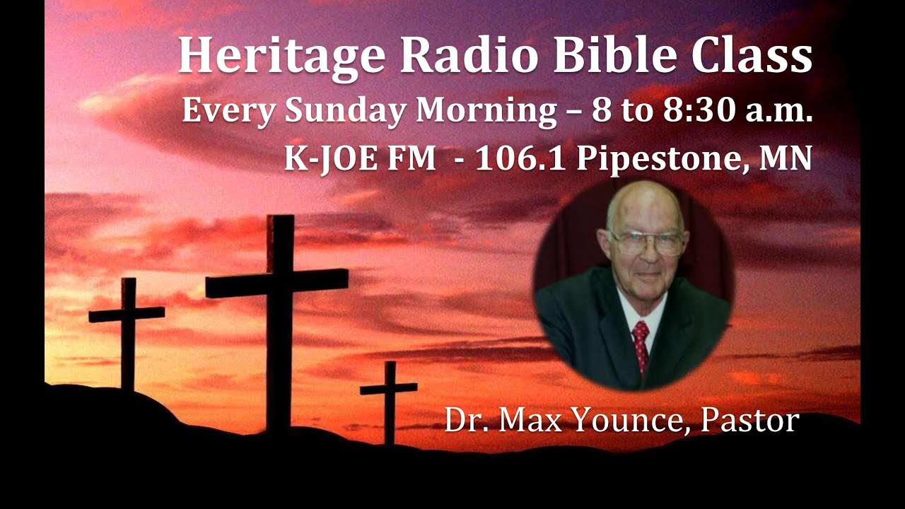 Home Base for our church on the web is http://www.heritagebbc.com where you can find almost 300 Bible Questions and Answers; as well as books by Dr. Younce, and others, which you can download free; or purchase your own. We invite you to visit us soon; either on the web; or, here in Walnut Grove. If you have questions, please feel free to write us at Heritage Baptist Bible Church, P.O. Box 573, Walnut Grove, MN 56180. Dr. Max D. Younce, Pastor.
