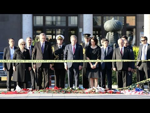 Erdogan, accompanied by Finnish counterpart Sauli Niinisto, laid flowers in front of the city's railway station where two suicide bombers blew themselves up on Saturday.