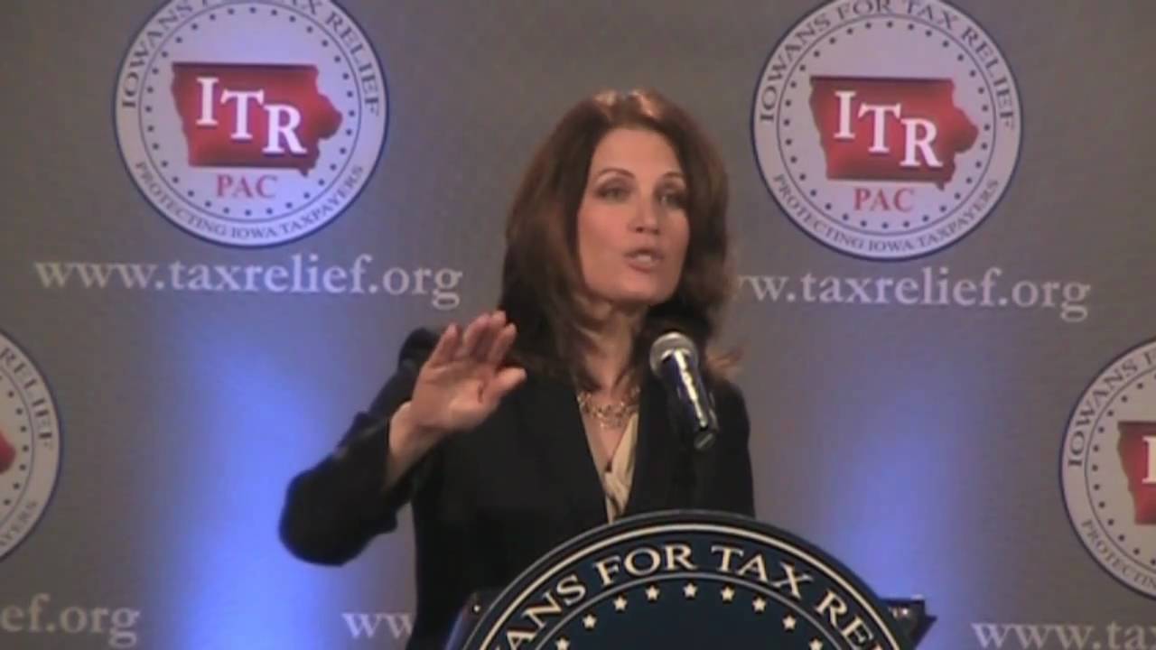 Rep. Michele Bachmann speaking at the Marriott Hotel in downtown Des Moines
