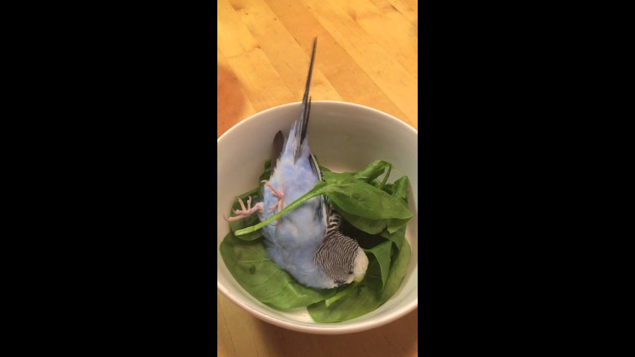 This bird loves spinach. He has a spinach bath every day or two.