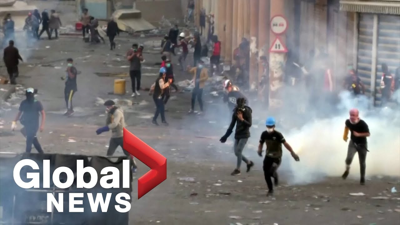 Protesters clash with security forces in Iraq as demonstrations continue - YouTube