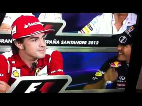 Sebastian vettel and fernando alonso talking about nico's refusal to move in Bahrain.
