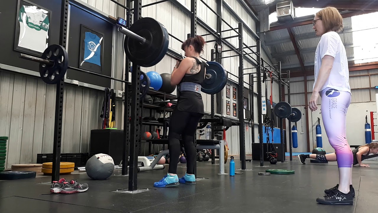 Natalie Jarman squats 70kg for a Front Squat Harness Female Masters 40+ World Record.