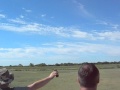 Almost lost this one,I caught a problem on last pass,went on to try and land it.Made it on ground with minor damage.Right servo stripped out.Guess HS 82mg servos next time.