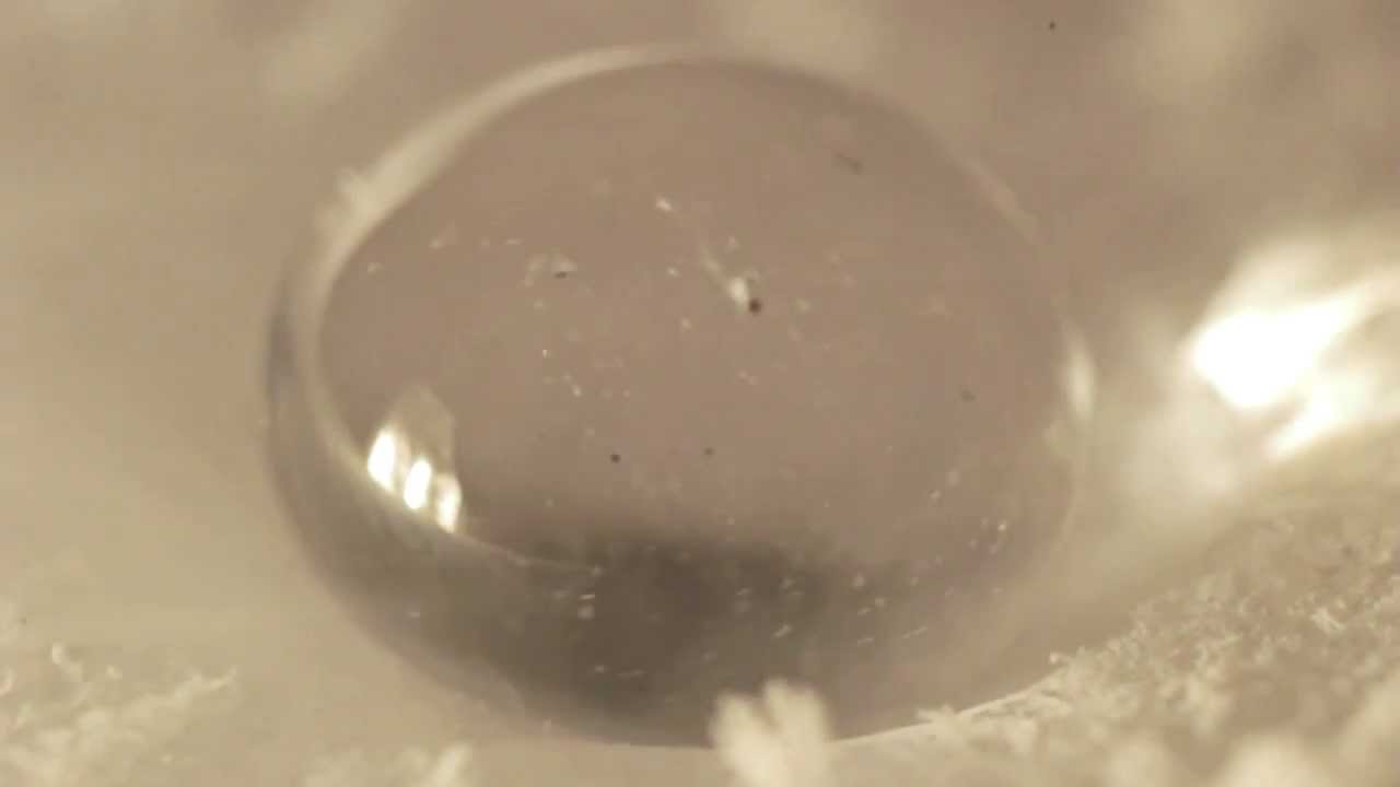 Freezing water drops on dry ice filmed in macro [Full HD 1080p] Dry ice is frozen carbon dioxide (CO2) at a temperature of −78,48 °C (Dry ice in water: http://www.youtube.com/watch?v=ukpUjj...)