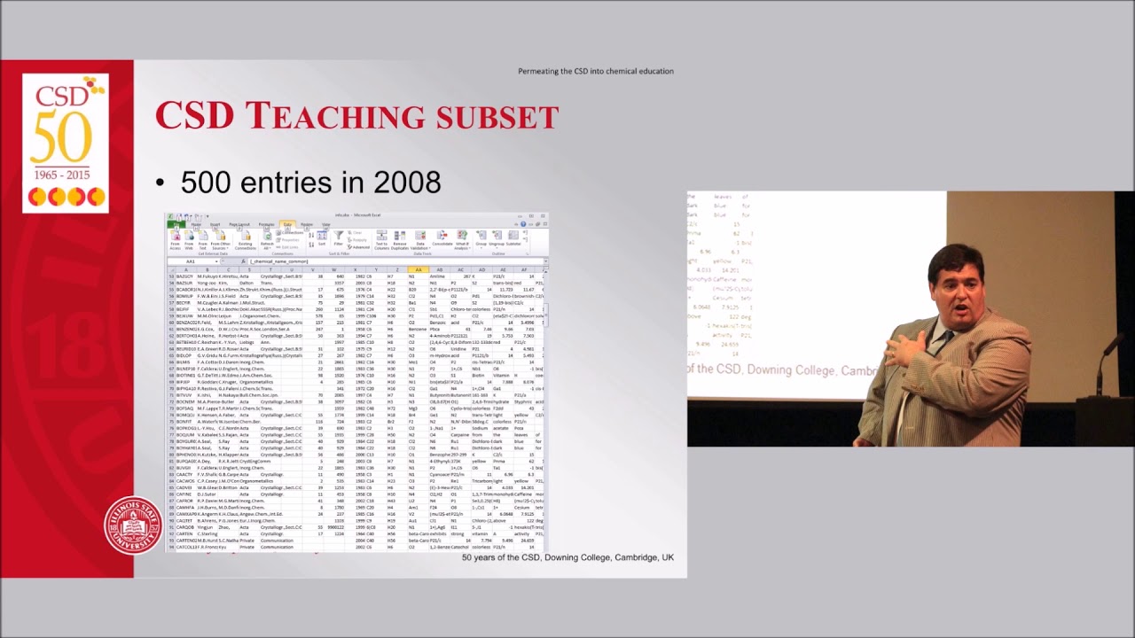 Gregory Ferrence, Professor of Chemistry at Illinois State University, talks at the CSD50 celebration event on the potential of the CSD to be better used within chemical education. In particular how we use the data that comes out of the CSD as a way to teach chemical principles in the teaching of chemistry.