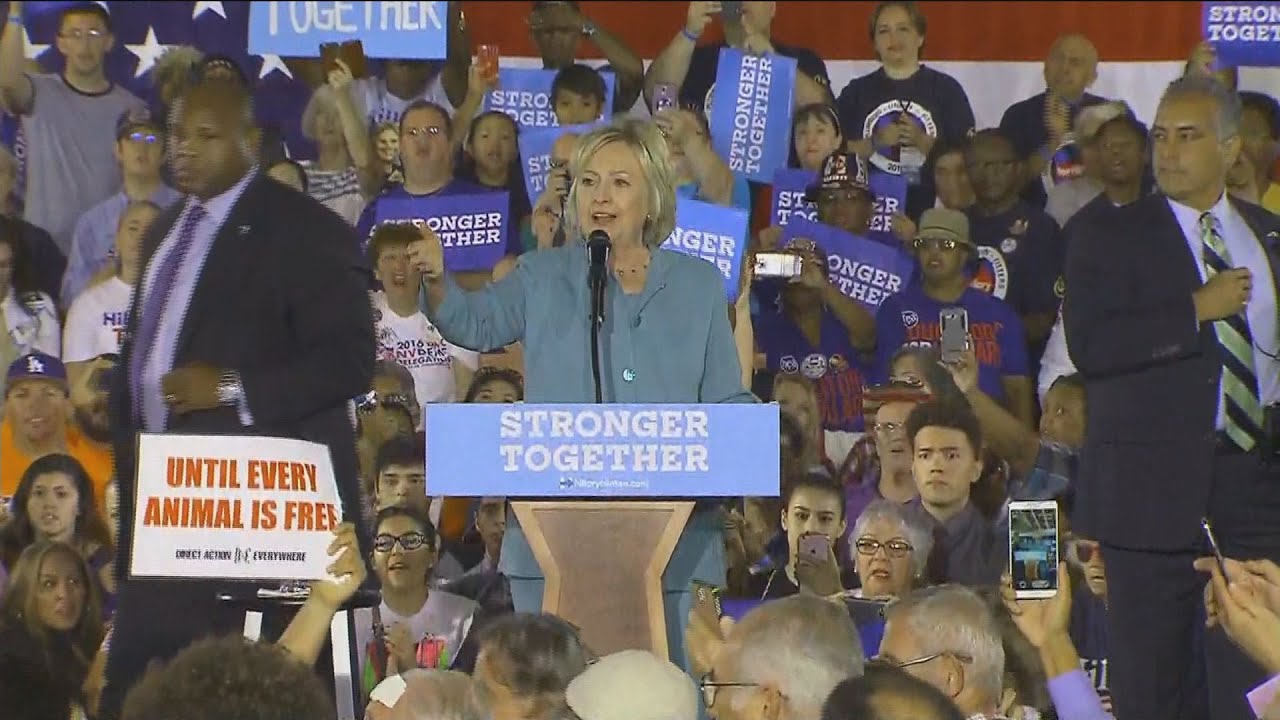 Aug. 4 -- Hillary Clinton was interrupted by animal rights protesters at a rally in Las Vegas, Nevada. Secret Service agents came to the Democratic nominee’s aide on stage, but the incident was quickly diffused. Clinton joked, saying that they were there to protest Donald Trump. “Trump and his kids have killed a lot of animals,” she said.