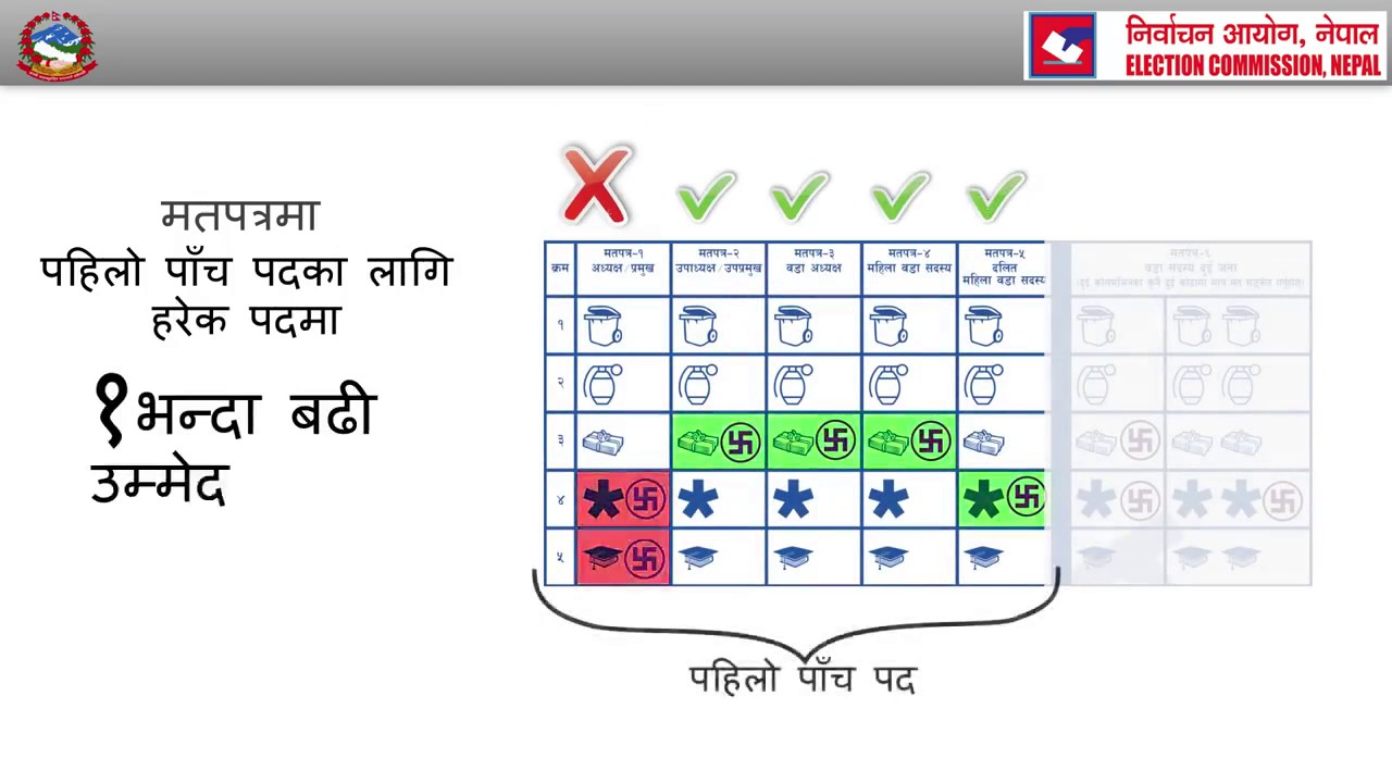 This video describes the process to cast your vote in the upcoming Nepal Local elections 2017. ( नेपाल को स्थानिय चुनावमा भोट् हाल्ने तरिका ) Video prepared by Election Commission of Nepal with support of IFES