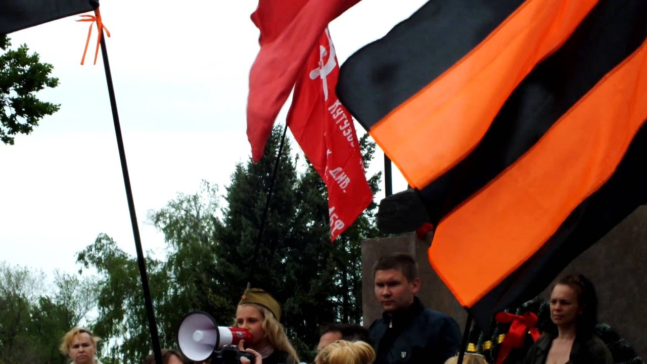 Луганск 9 марта 2014 г. Луганчане поют гимн России и день Победы