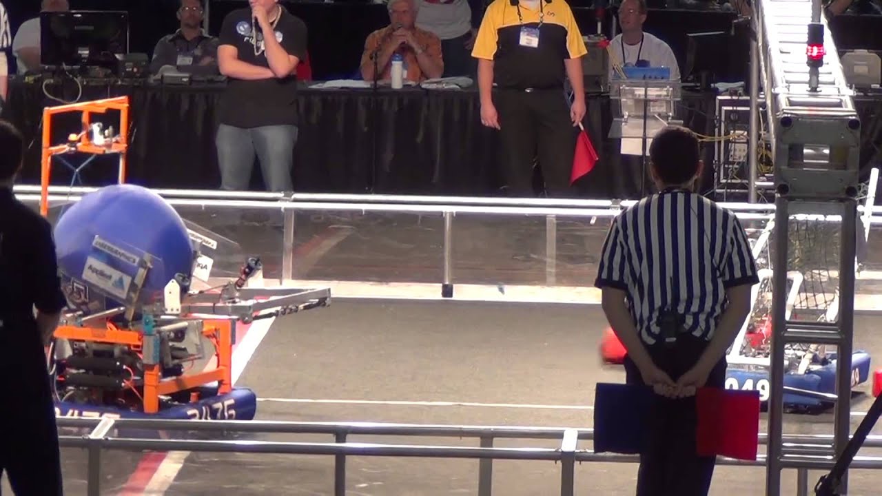 Score: Red 136 points; Blue 95 points. RED Teams (drivers on left) frc 1717, frc 3577, frc 988 vs. BLUE Teams (on right) frc 5049, frc 3476, frc 2403. FIRST FRC Robotics April 3-5, 2014 Aerial Assist Las Vegas Regional Qualification Match.