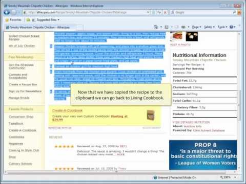 This video demonstrates how to use Living Cookbook 2011 to copy recipes from the Internet.